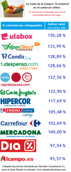 Así se desprende de un estudio realizado a 46 artículos comunes del hogar (sin incluir pescadería) a doce comercios online, elaborado por Mavafer Consultores para el blog Desde Mi Atalaya.