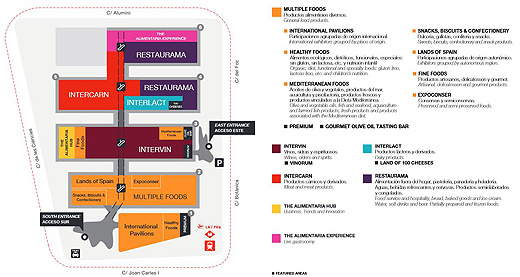 Multifoods, Intervin e Intercarn se llevan gran parte de la superficie expositora de Alimentaria 2016. La mejor forma de comprobar cómo estará repartida la feria es con el siguiente plano que facilita la organización (pinchar para ver más grande).