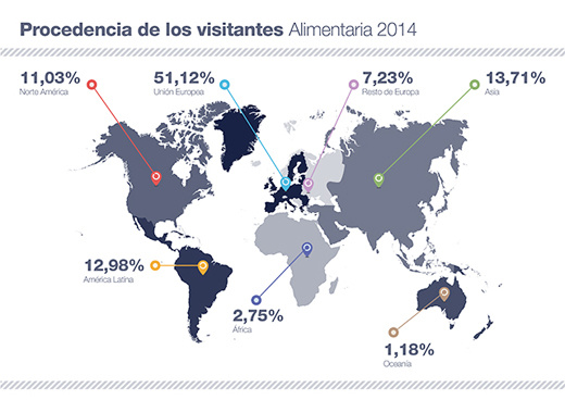 El ADN de Alimentaria tiene fijado el objetivo de consolidar su posición como plataforma para internacionalizar las empresas. Para darle esa fuerza, ha invitado directamente a más de 800 importadores y operadores clave de la distribución, el retail y el canal Horeca procedentes de Latinoamérica, Asia, Estados Unidos, Canadá, Europa y Oriente Medio. Además, espera atraer a profesionales de todo el mundo y superar los 42.000 visitantes extranjeros, cifra que logró en su vigésima edición.