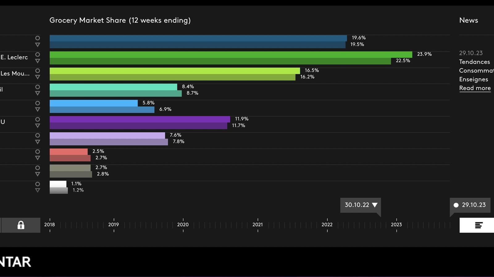 Cabe recordar que el Grupo Auchan se encuentra en la quinta posición (8,4%) por cuota de mercado de la distribución minorista en Francia. Por delante tiene a Groupement U (11,9%), Groupement Les Mousquetaires (16,5%), Carrefour (19,6%) y E. Leclerc (23,9%), según datos del último Kantar Worldpanel correspondiente al mes de octubre de 2023.