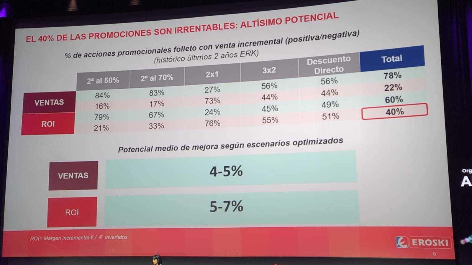 "En Eroski, el 40% de las promociones ha fracasado y nos han hecho perder dinero. Además, el 22% no generan ventas incrementales", ha explicado en el 29º Congreso Aecoc de Estrategia Comercial y Marketing celebrado en Madrid.