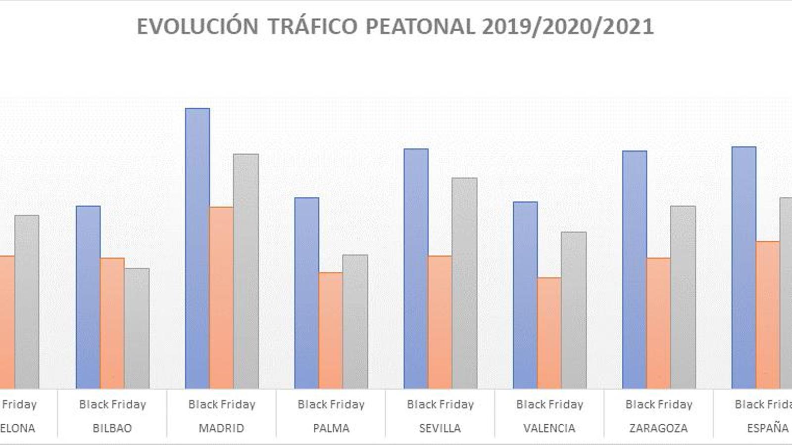 Pero por mucho que, comparados con los de 2020, los datos de este Black Friday mejoren sustancialmente, los registros de 2019 siguen quedando lejos. Si analizamos los datos de este 2021 junto con los del último año prepandémico, hallaremos una caída del -21% en el tráfico peatonal y del -31% en las entradas en tiendas. Lo que se traduce en 1387 peatones y 134 entradas menos de media nacional. Ninguna ciudad española se ha recuperado del todo aún del impacto causado por la pandemia: -50,4% de entrada en tiendas y -40% de movimiento ciudadano. La llegada del coronavirus a nuestras vidas ha fomentado otras formas de compra, vinculadas al mercado online, que hacen suponer que, pese a que pueda costar recuperar las entradas en tiendas de antaño, la economía va fortaleciéndose poco a poco tras el batacazo vivido con el inicio del confinamiento.