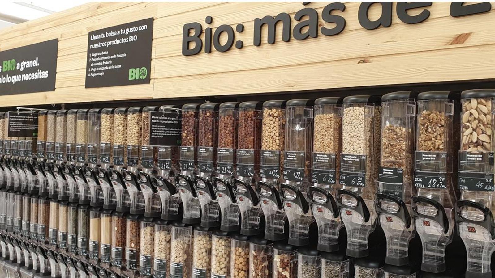 Nuestros exhibidores 4eBin(TM) para la venta a granel de productos y Sigma(TM) para la exposición de frutas y verduras en frío, soluciones que ayudan a combatir el uso de envases de un solo uso y el desperdicio alimentario.