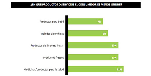 Según Nielsen, refiriéndose a los frescos, hay aún determinadas categorías de la cesta de la compra aún muy incipientes en esto del comercio electrónico. Lo mismo sucede con los productos de limpieza (10%), vino y bebidas alcohólicas (8%) y artículos para bebé (7%), todavía más asociados a la visita física al establecimiento.