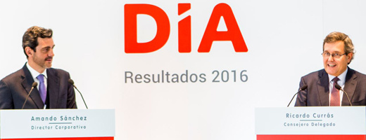 "La inversión sostenida en precios combinada con la mejora del servicio al cliente está dando buenos resultados en todo el universo Dia. En 2016 también se produjo un gran avance en el desarrollo de nuestro negocio con nuestros socios locales. Más de 3.300 emprendedores trabajan con nosotros día a día para complacer a nuestros clientes y hemos conseguido una mejora significativa en su satisfacción, algo de lo que nos sentimos realmente orgullosos", explica Ricardo Currás. El responsable de la compañía añade también que Dia ha sido capaz de generar 207 millones de euros de caja de operaciones y reducir la deuda neta en 254 millones de euros, "muy por debajo de la media de nuestros competidores".