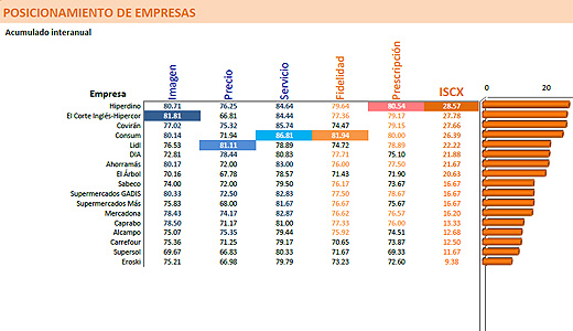 En el ranking de Stiga, tras Hiperdino se encuentran los clientes de Hipercor, Covirán, Consum, Lidl, Dia, Ahorramás, El Árbol, Sabeco y Gadis para completar el top 10. Mercadona está en la posición 12. Cierra el listado Eroski.