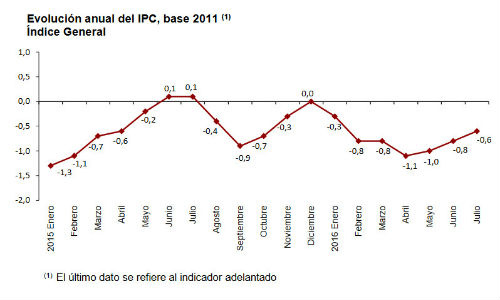 En términos mensuales, el IPC retrocedió el 0,7% en julio respecto al mes anterior, en contraste con los descensos del 0,9% registrados tanto en julio de 2015 como de 2014.