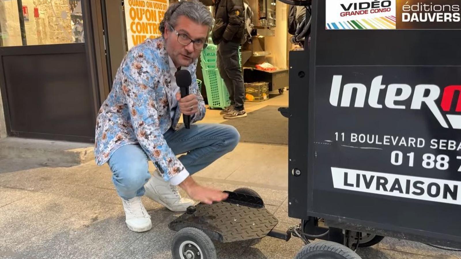 Intermarché ha puesto a prueba una nueva solución de entrega a domicilio para ámbitos urbanos, con la que es posible transitar por zonas y espacios de una ciudad en los que un vehículo convencional tiene difícil acceso -o incluso es absolutamente imposible- y que permite aumentar significativamente el volumen de entregas a pie, como muestra el periodista francés Olivier Dauvers en su canal de YouTube.