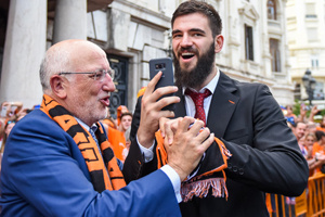 La fiesta en el pabellón fue histórica y Roig no se la quiso perder posando con los jugadores en la pista. Para la historia queda también su abrazo con el montenegrino Bojan Dubljevic, MVP de la final, quien le prometió quedarse en el equipo pese a los cantos de sirena que llegan de la NBA. "¡Esta es mi casa, yo siempre aquí!", dijo emocionado a Roig, igualmente exultante. "¡Nuestro, nuestro, esto es nuestro!", repetía el jugador sobre el título liguero. Un abrazo entre flaxes convirtió el momento en una de las imágenes de la celebración.