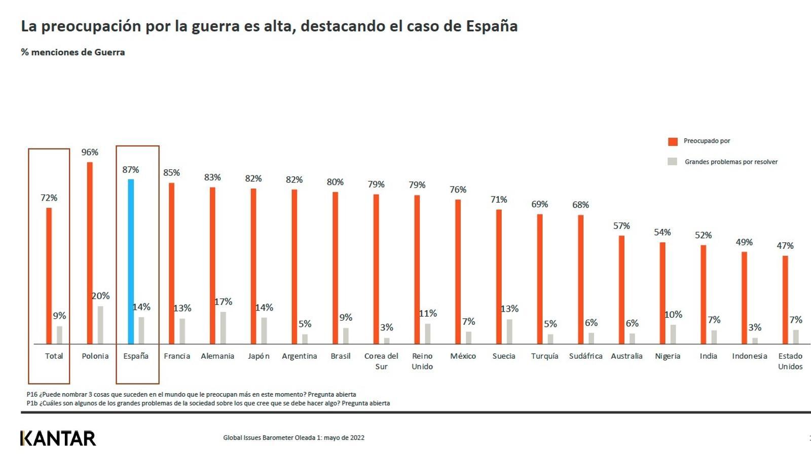 En ese sentido, el informe pone de relieve cómo la anterior preocupación por la pandemia se está disipando, pero, en cambio, se está desplazando paulatinamente a los precios. Solo un 38% de españoles aún se muestra alerta con la COVID-19, mientras que ya la mitad lo está por la inflación.