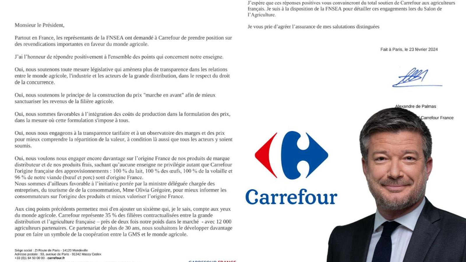 Además, responde positivamente a todas las demandas que los representantes del sector agrícola han hecho a Carrefour Francia: