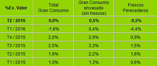 Estas cifras son el resultado de un ligero crecimiento del 0,5% del mercado envasado, unido a una estabilización de la sección de frescos, que ha rebajado su caída al -0,5% en el trimestre.