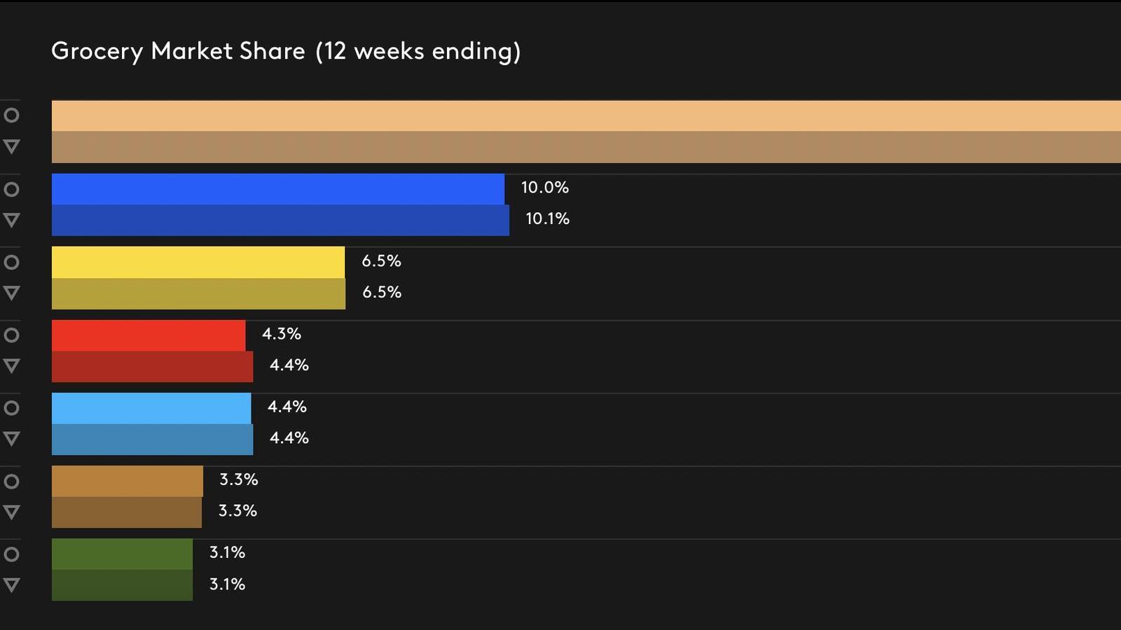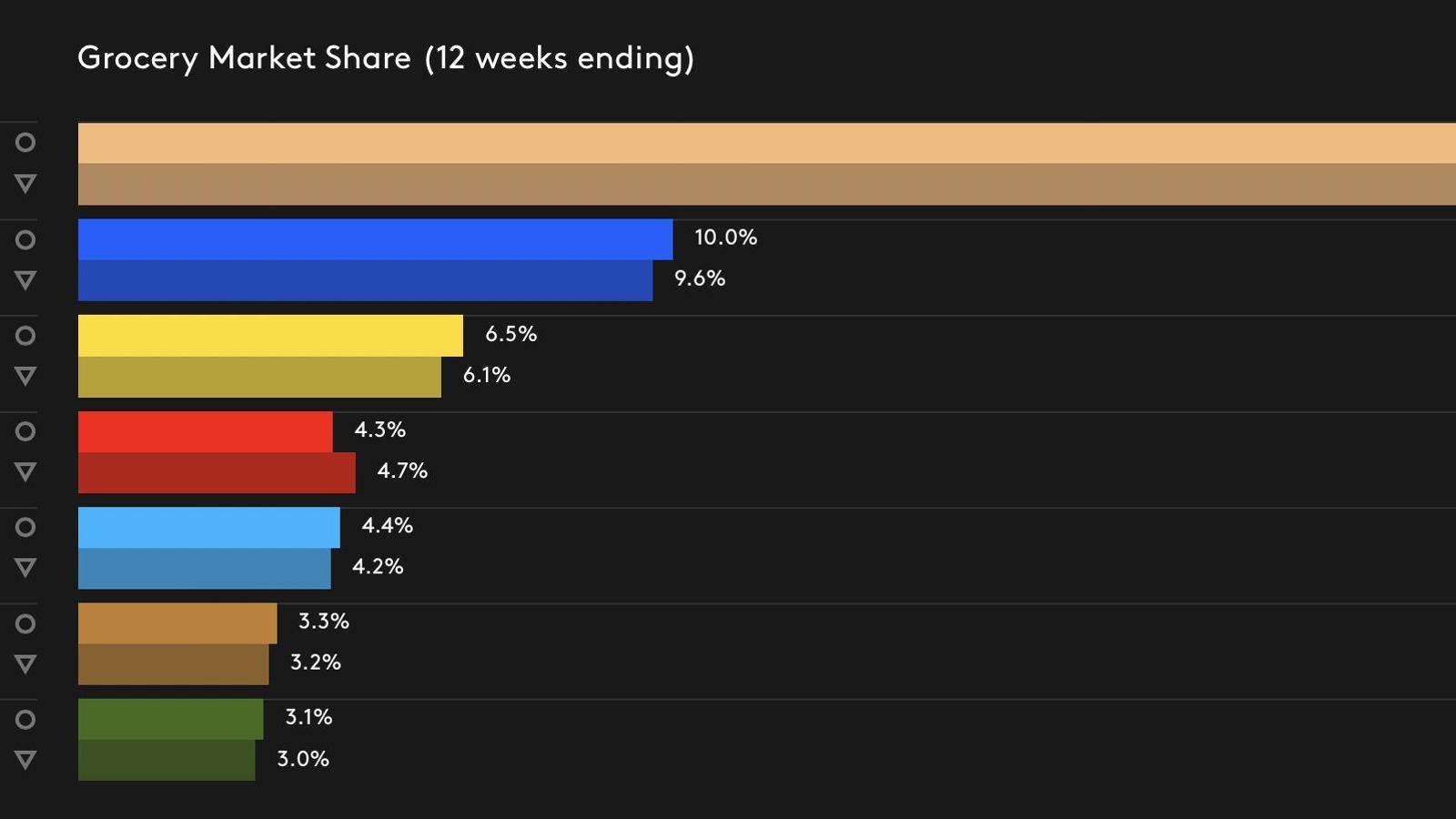 Entre las siete grandes enseñas, sólo Carrefour y Dia sufren variaciones: ambas retroceden 0,1 puntos hasta el 10,0% y el 4,3% de cuota de mercado respectivamente.