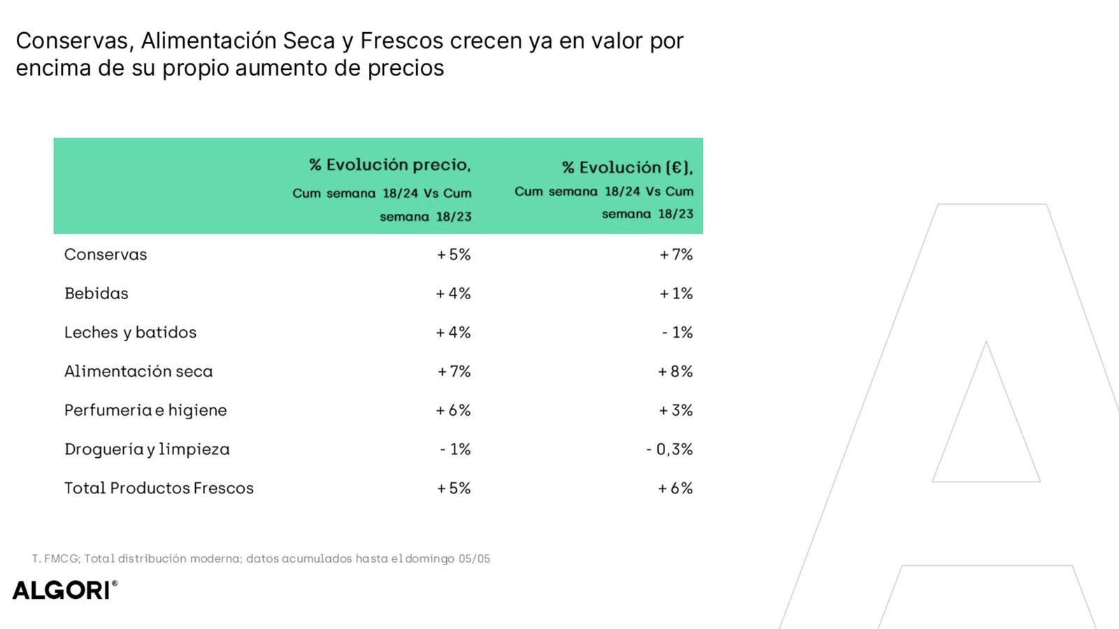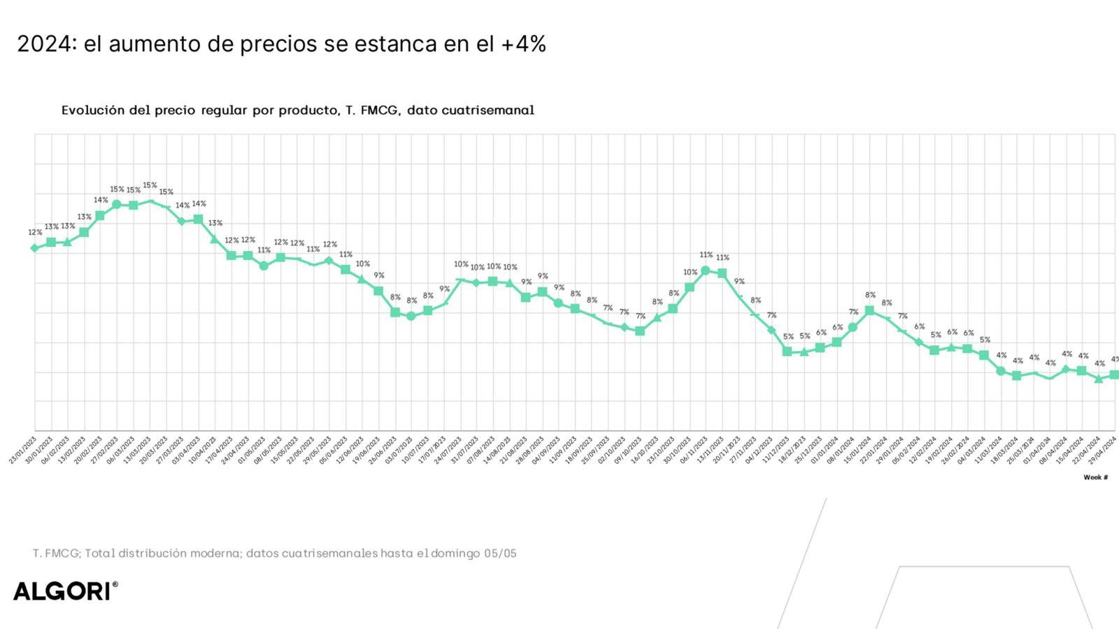 El aumento de precios del sector se ha estancado alrededor del 4%, según datos de Algori correspondientes al periodo que va del 1 de enero al 5 de mayo de 2024.