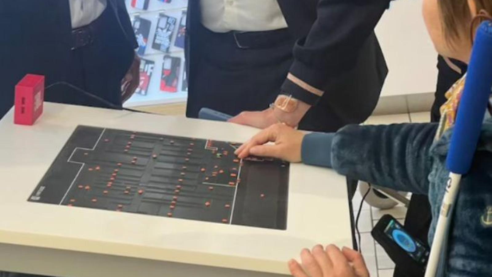 Esta solución única, pionera en Europa, combina dos tecnologías avanzadas: Virtuoz, un mapa táctil y sonoro colocado a la entrada de la tienda, que facilita a los clientes con discapacidad visual el aprendizaje de la distribución de la tienda; y NaviLens, que utiliza códigos QR inteligentes detectables hasta 20 metros de distancia a través de una aplicación específica.