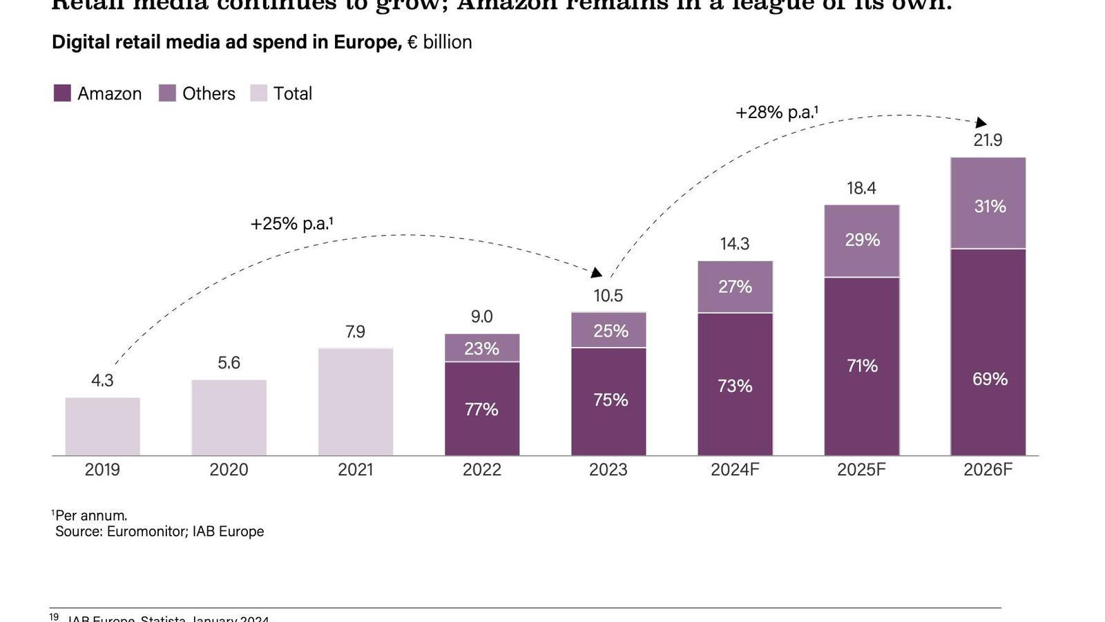 En tercer lugar, existe una gran oportunidad de negocio en el retail media. "Los retailers no tienen tiempo que perder en la construcción y el escalado de su negocio de retail media si quieren que impulse sus beneficios en 2024", señala el estudio.