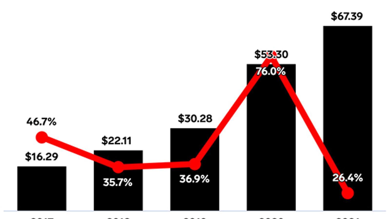 Las ventas de comercio electrónico minorista en Walmart, incluido Sam's Club, alcanzarán los 67.390 millones de dólares en 2021, según el pronóstico de eMarketer Retail.