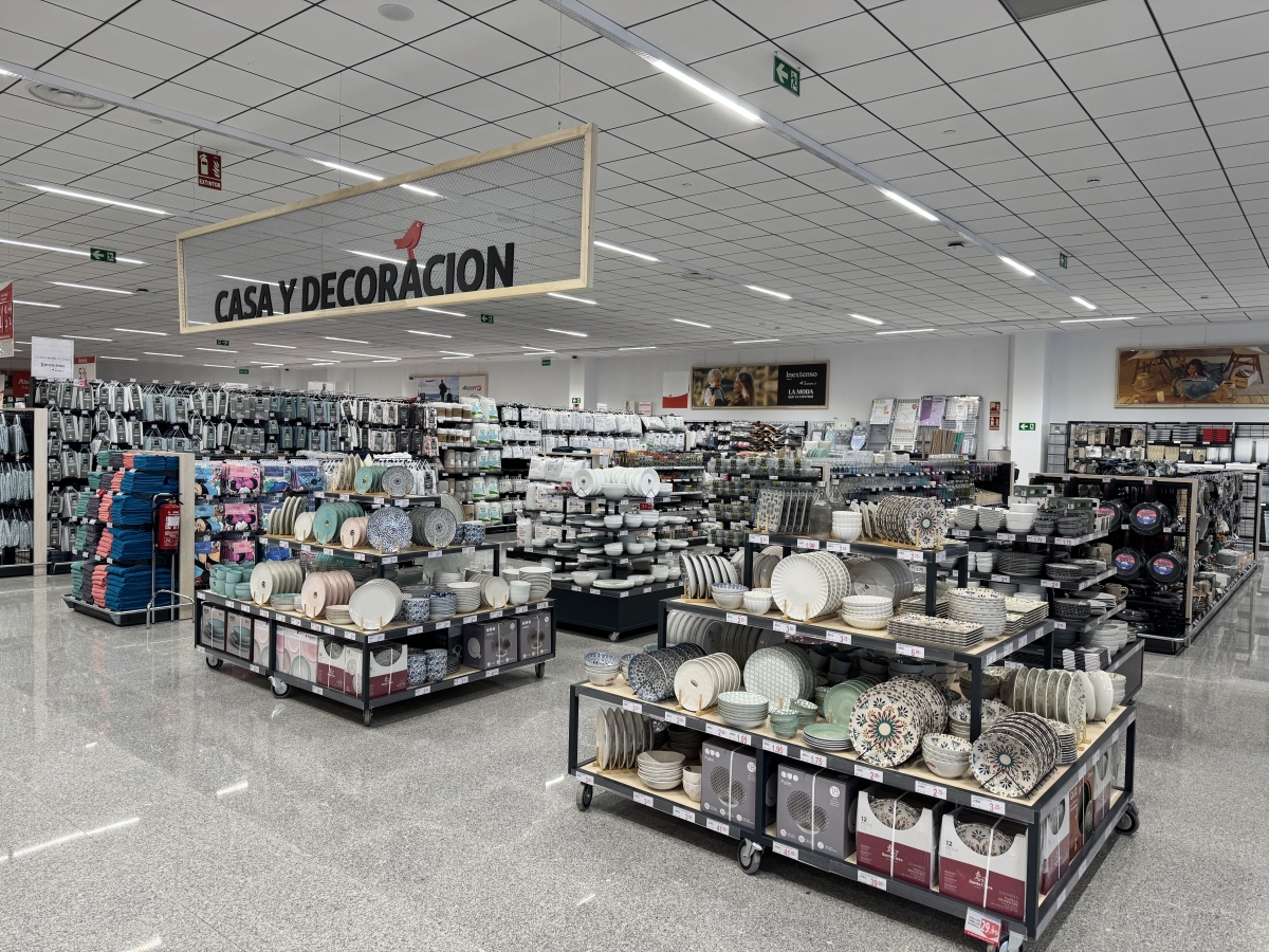 El nuevo establecimiento, ubicado en el Parque Comercial Señorío Plaza, es más compacto que el híper tradicional —4.200 metros cuadrados de superficie de venta frente a los 7.000 del recién recortado de Alcobendas, por ejemplo—, cuenta con cerca de 50.000 referencias de producto, más presencia de marca propia y mostradores asistidos de pescadería, carnicería y charcutería, además de las habituales secciones de no alimentación (papelería, librería, textil, decoración y tecnología). En él trabajarán 70 personas.