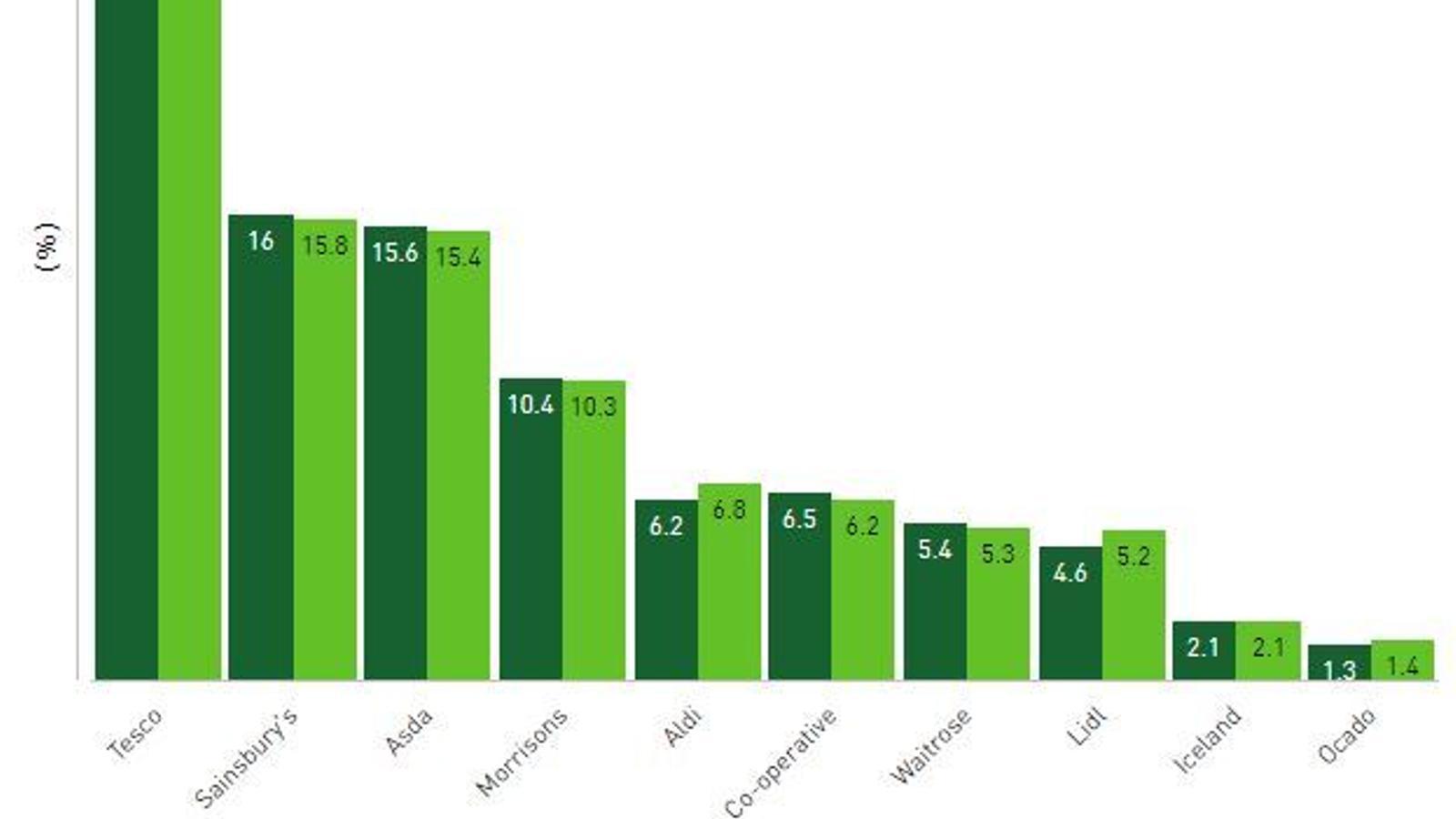 Las ventas de Tesco entre julio y septiembre subieron el 2,1%, mientras que las de Sainsbury's aumentaron el 1,9%. Asda, con un +1,8% y Morrisons (+2,8%) también tuvieron buenas noticias. "Morrisons fue el que más creció entre los grandes", ha resaltado Fraser McKevitt, analista de Kantar Worldpanel. Sin embargo, a pesar del crecimiento, su cuota de mercado cayó 0,1 puntos porcentuales al 10,3%.