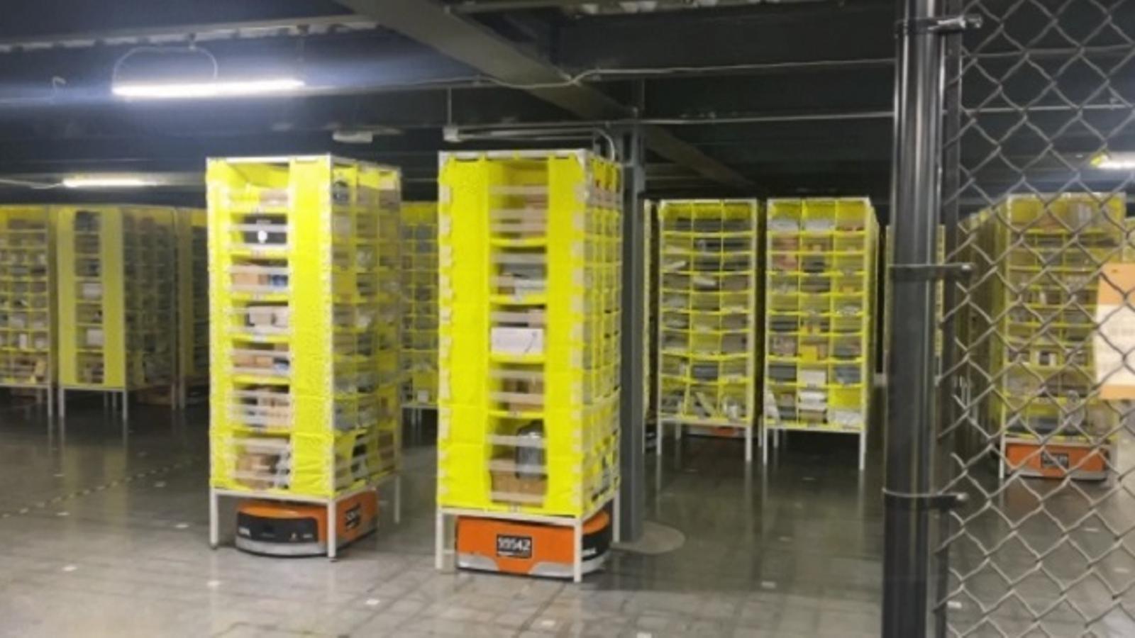 6.- Los robots de Amazon se encuentran debajo de los estantes del centro logístico.