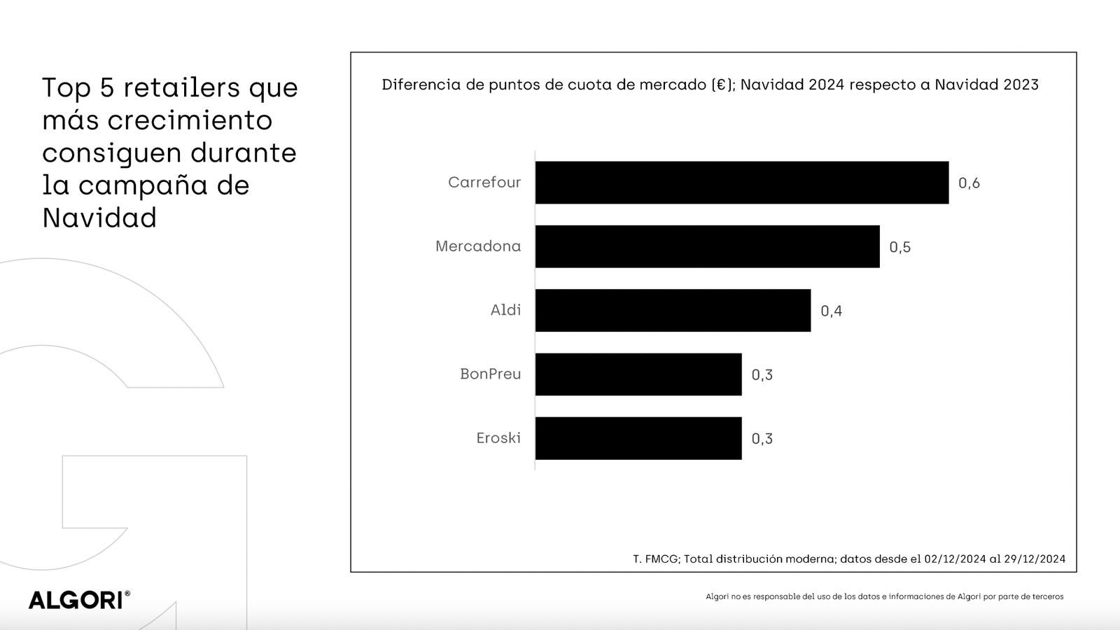 Carrefour, en ascenso durante toda la segunda mitad de 2024, se ha revelado como la cadena ganadora de la campaña navideña.