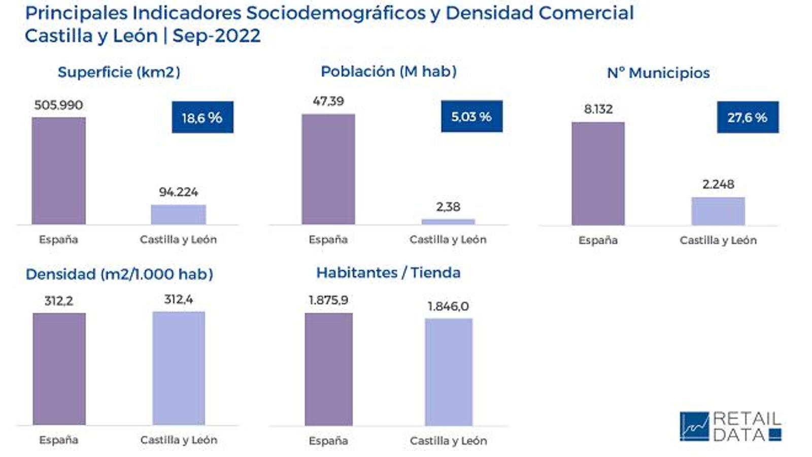 La densidad de población en Castilla y León es la más baja de España (25,34 habitantes por km2 frente a los 93,67 habitantes por km2, que es la media del país), lo que se traduce en un alto grado de dispersión territorial. A pesar de ello, el 81,8% de la población tiene establecimientos de gran consumo alimentario en su propio municipio. Y cabe destacar que, el 93% de estos, son poblaciones con menos de 10.000 habitantes.