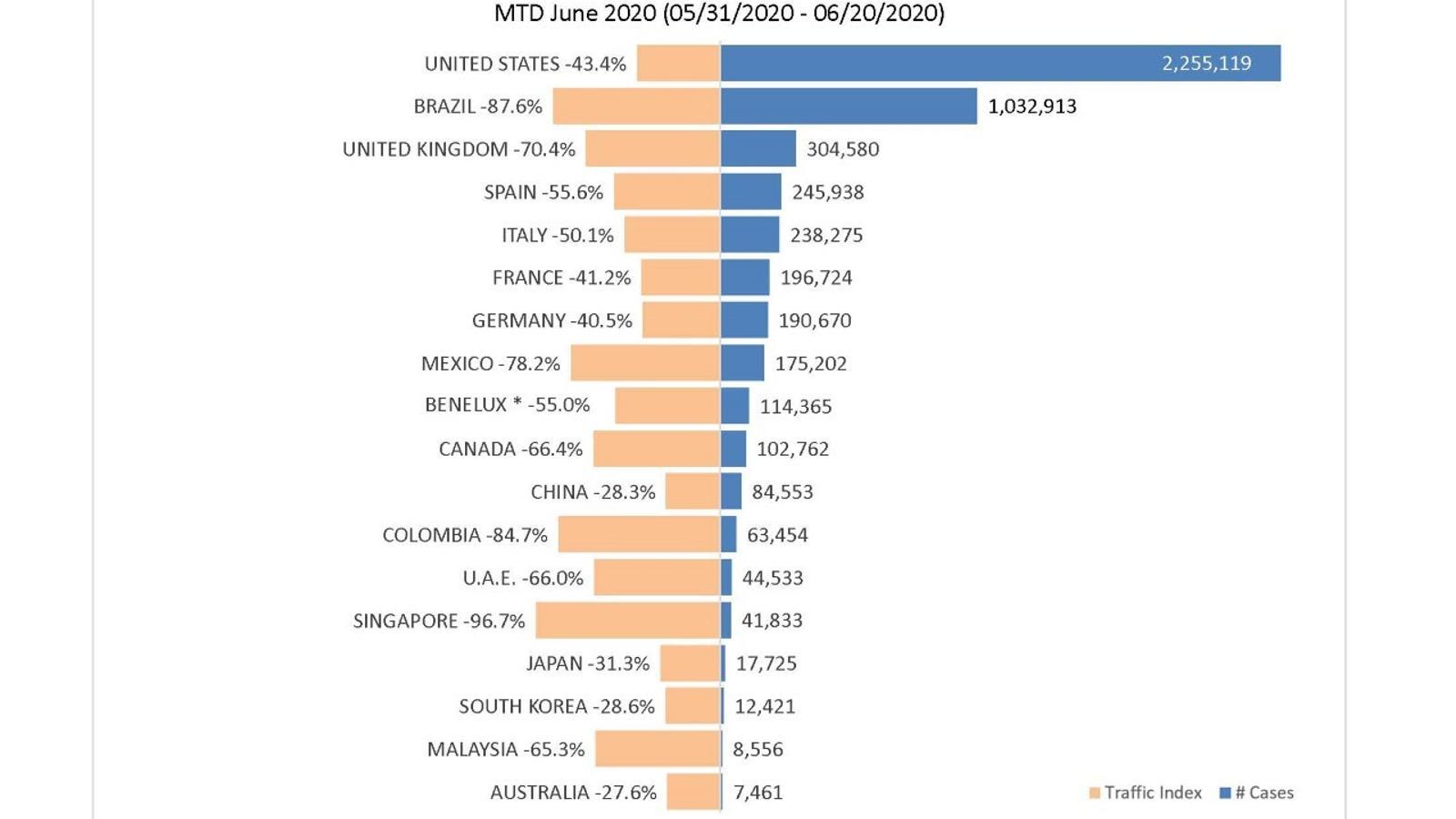En comparación, Brasil o Singapur registraronn cifras de tráfico en el entorno del -90% o más, equivalente a una afluencia prácticamente nula.