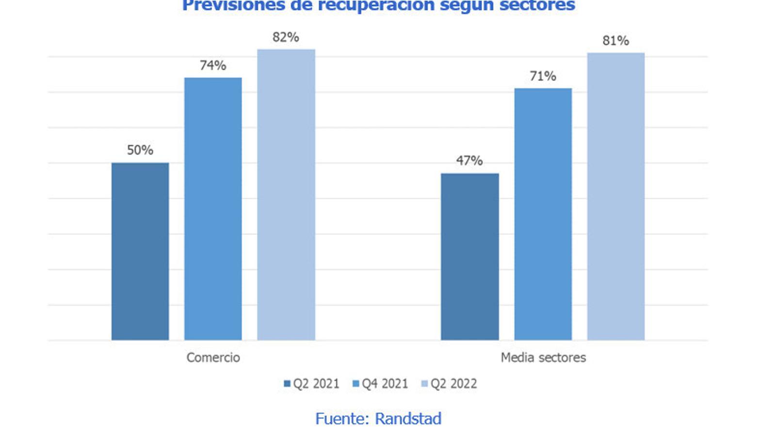 El 74% de los empresarios del comercio confían en recuperar sus negocios completamente a finales de este año, una cifra tres puntos porcentuales más optimista que la del conjunto de las empresas del país, de las que el 71% espera ya haber alcanzado en esa fecha niveles previos a la irrupción de la crisis, según un estudio de Randstad.