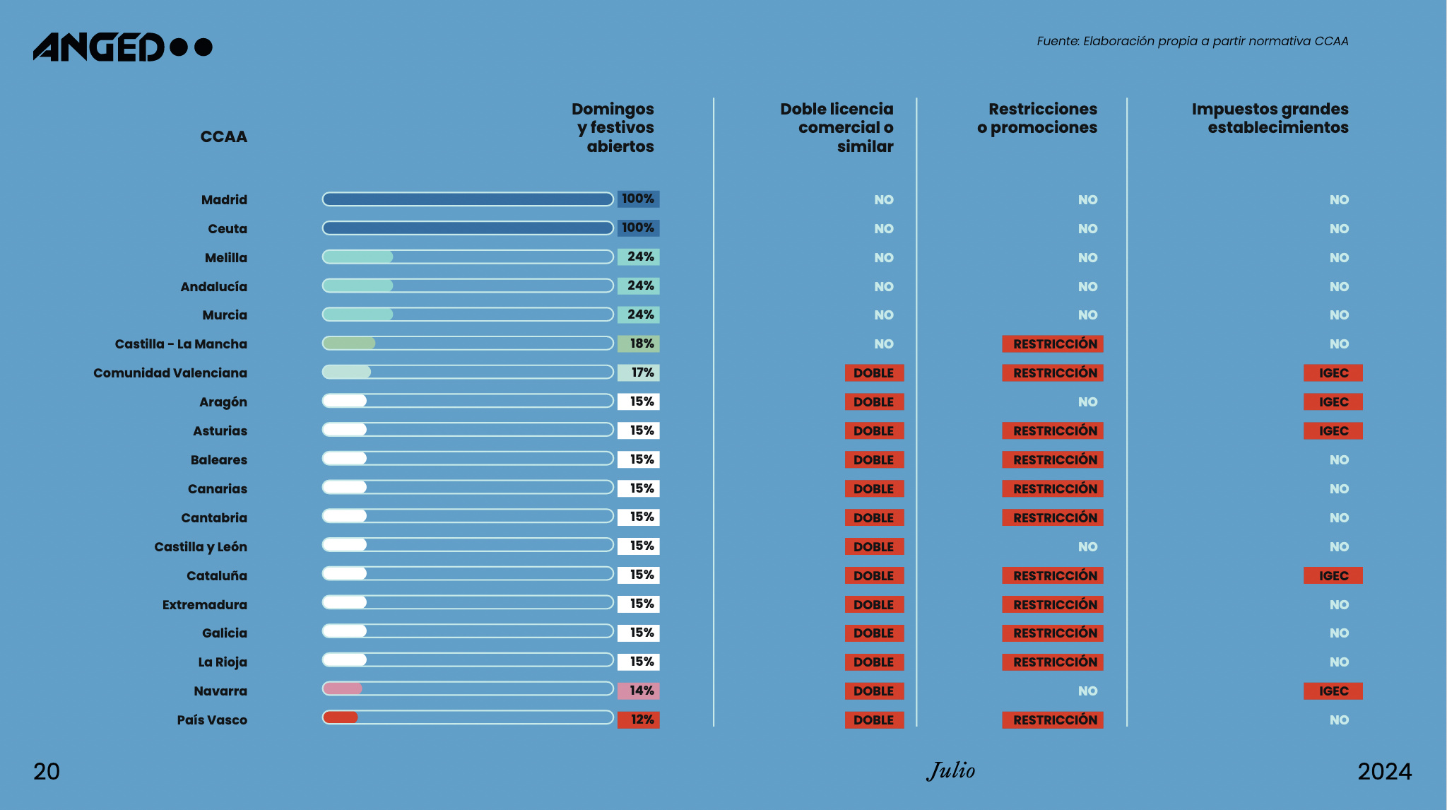 En esta línea, la Comisión Europea destacaba en 2023 que "en determinadas comunidades autónomas, las barreras regulatorias al comercio minorista siguen obstaculizando la competencia. España se encuentra entre los Estados miembros más restrictivos en lo que respecta a los marcos regulatorios minoristas", sólo por debajo de Francia y Austria.