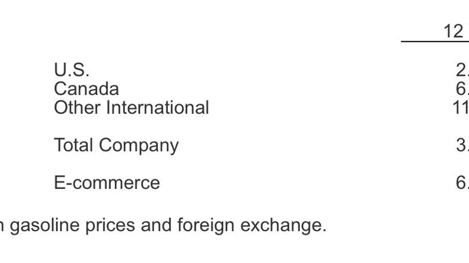 Las ventas comparables para las doce semanas que terminan el 26 de noviembre de 2023 pueden verse en el siguiente cuadro (en la columna de la derecha, el dato ajustado excluyendo el impacto del precio de la gasolina y el cambio de divisa):