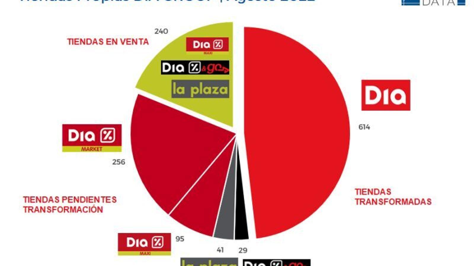 Si nos fijamos en la red propia -explica Matarrubia-, de un total de 1.275 tiendas, algo más de 600 ya son Dia (48%), siendo Dia Market (256) y Dia Maxi (95) los formatos que aún aportarán más unidades a la transformación.