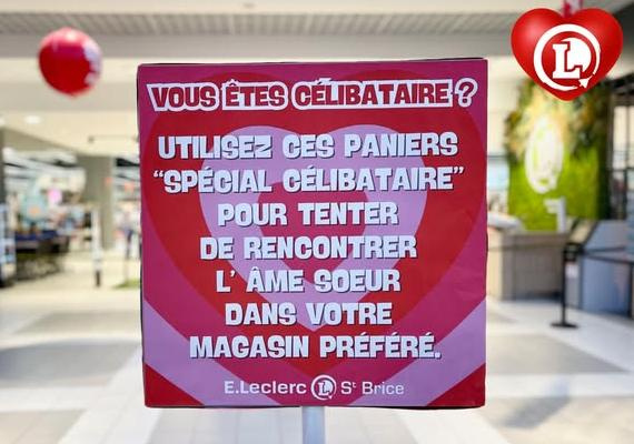 Encontrar el amor en el súper o simplemente la posibilidad de ligar hizo correr ríos de tinta hace algunos meses tras un comentario en redes sociales de unas clientas en una tienda de Mercadona. Pues bien, ahora que se acerca San Valentín, el próximo 14 de febrero, E.Leclerc ha dado también un paso al frente para atraer a los clientes con sus cestas especiales 'Soltero para adoptar'.