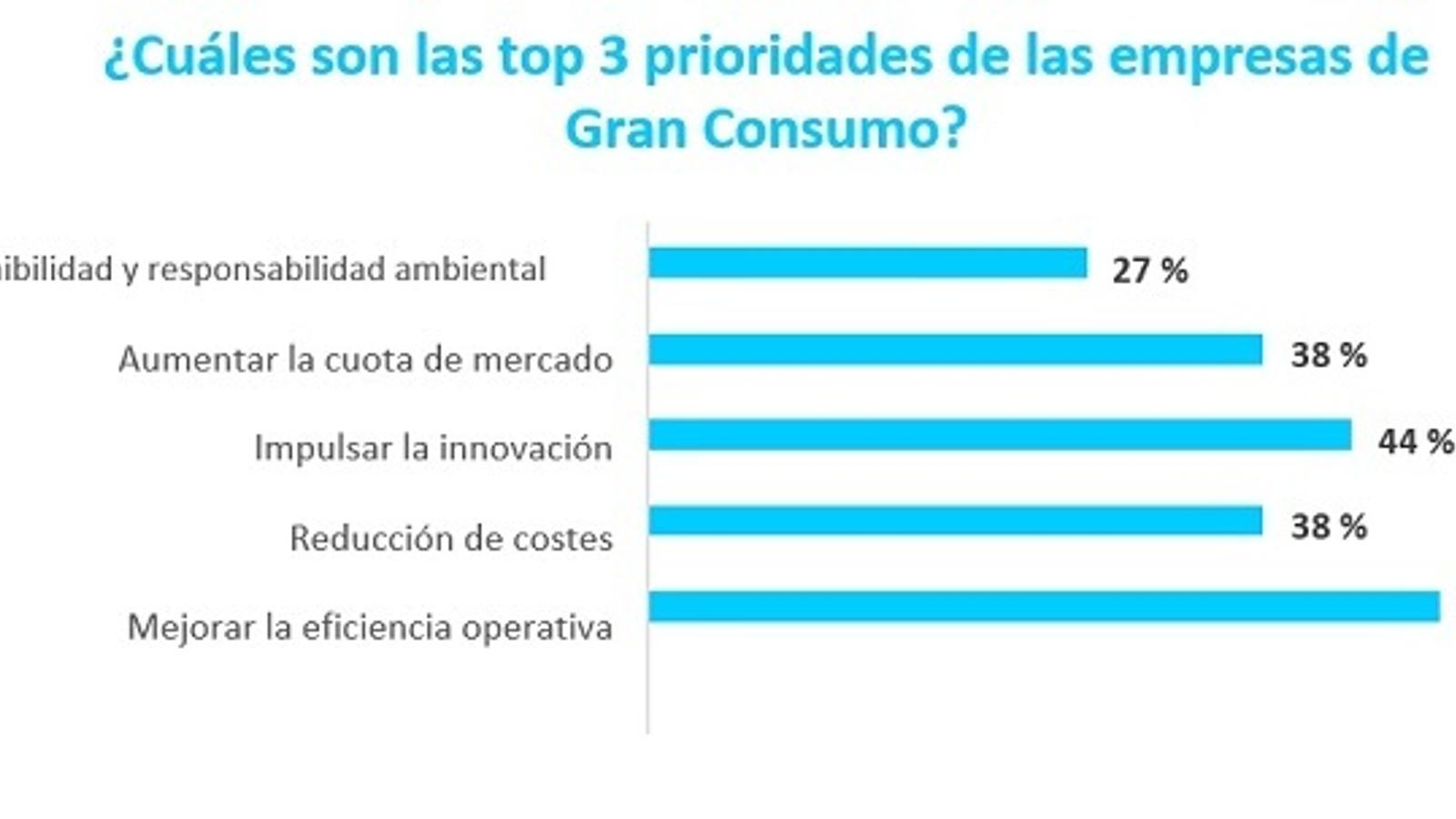 Entre las prioridades para invertir en I+D+i, las empresas nacionales de gran consumo destacan la mejora de la eficiencia operativa (49%), el impulso de la innovación (44%), la reducción de costes y aumento de la cuota de mercado (38%), así como la sostenibilidad y responsabilidad ambiental (27%). Por su parte, construir asociaciones estratégicas y la adquisición y desarrollo de talento (7%) son las cuestiones menos relevantes para el sector por el momento.