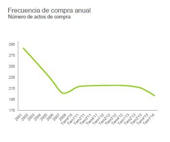 De hecho, los españoles vuelven a registrar tasas de frecuencia de compra de niveles propios de antes de la crisis y de sus primeros compases (ver gráfico debajo).