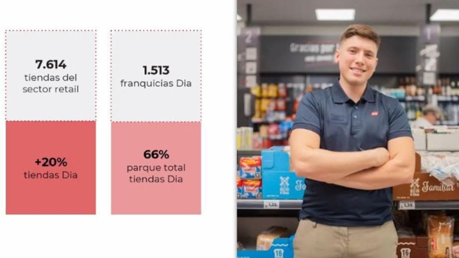 De los 45 años de historia de la compañía, más de 35 ha estado apoyando a todos aquellos emprendedores que han manifestado su interés en poner en marcha un negocio de proximidad o tienda de barrio. Ello explica que, desde 1989 -cuando Dia abrió su primera tienda de franquicia en la localidad conquense de Tarancón (Cuenca)- y hasta hoy, la empresa haya asumido un "liderazgo absoluto" en esta línea de negocio. Así, de las 7.614 tiendas franquicias que actualmente existen en el sector retail, el 20% son emprendedores que lo hacen bajo el paraguas y el apoyo de la franquicia Dia. En la actualidad, Dia cuenta con 1.513 franquicias en todo el territorio español, lo que se traduce en que este modelo ya representa el 66% de su red de tiendas.