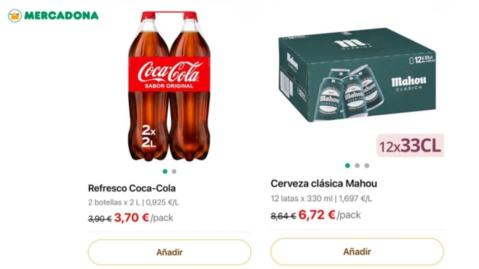 Asimismo, por ejemplo, en su portal web también pueden observarse otras promociones: del 22,2% en el pack de 12 latas Mahou Clásica y del 5,1% en el pack de dos botellas de 2L de Coca-Cola (ver foto abajo).