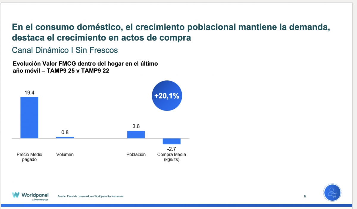 La frecuencia aumenta en todos los perfiles —jóvenes y sénior a la cabeza— y en todos los canales, con las cestas más pequeñas aportando un 90% del crecimiento del tráfico.