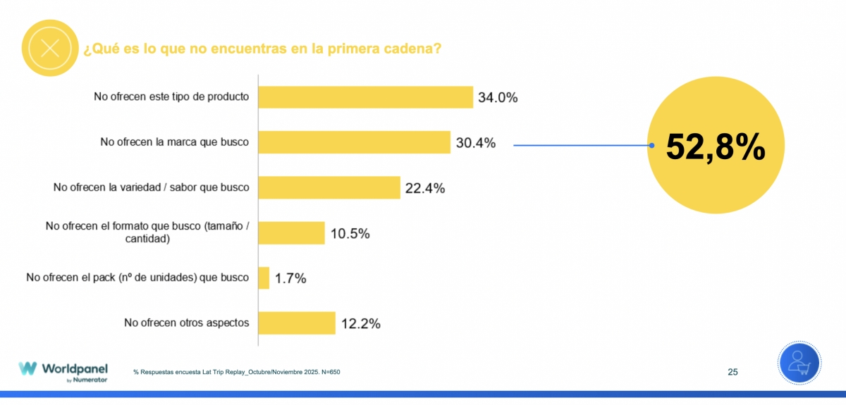 Conforme menores son las cestas, más protagonismo adquiere la marca de fabricante (MDF), en parte porque el consumidor busca en segundas o terceras cadenas los productos marquistas que no encuentra en su cadena habitual. Según el informe de Numberator, el 62,3% de quienes hacen una compra adicional lo hacen porque su producto preferido no estaba disponible en la primera cadena
