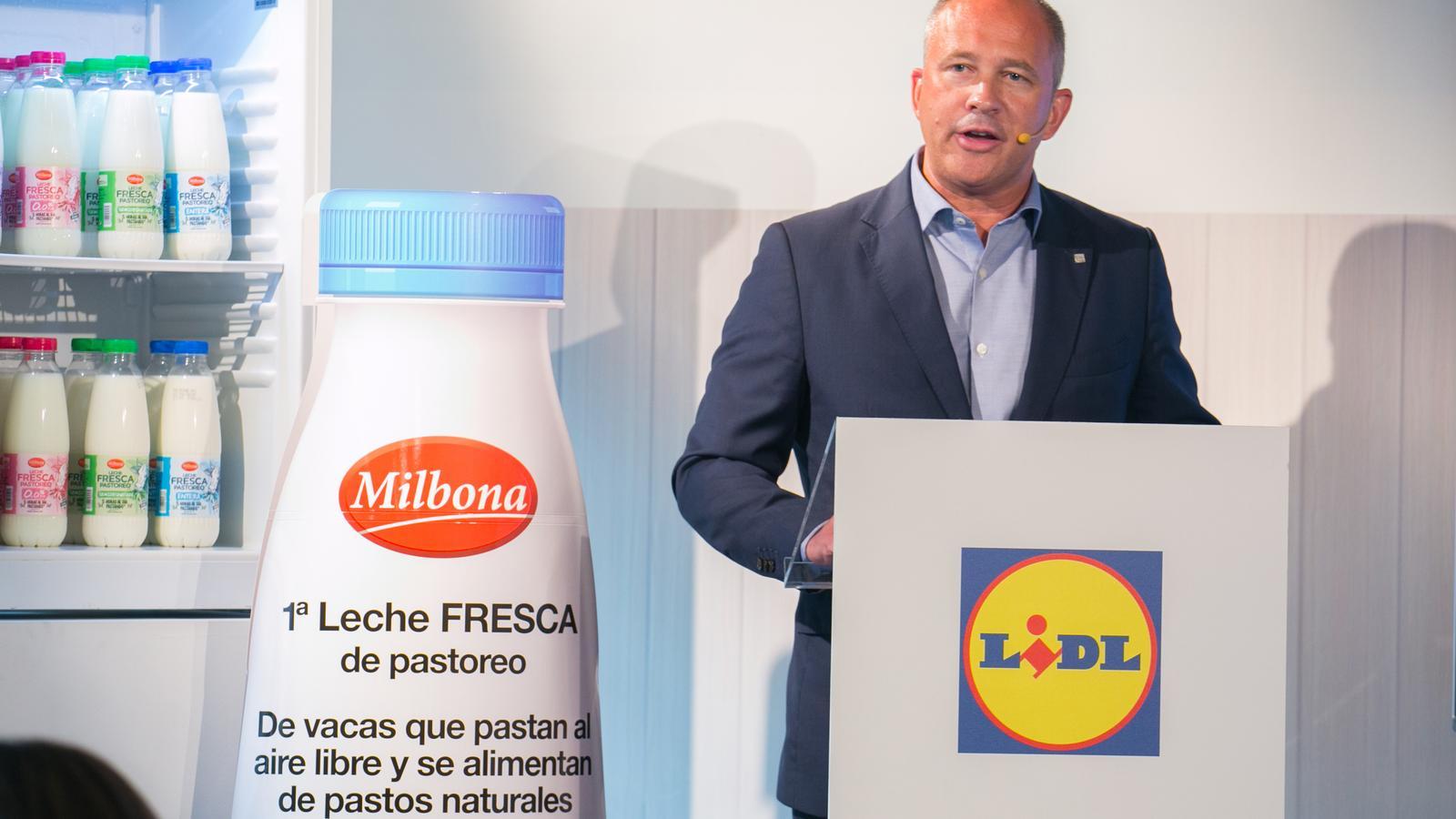 Comenta Miguel Paradela, director general de Compras de Lidl España, que "el cliente demanda cada vez más este tipo de productos" y que esta novedad "es una muestra más de la apuesta de Lidl por el desarrollo sostenible del sector lácteo español". Paradela confirma que el coste de producción de esta leche es ahora mayor (+10%) con la doble certificación, pero el precio no se ha trasladado al consumidor. Así, el precio se mantiene en 0,59 euros la botella de 75 cl (0,79 euros el litro). El litro de la leche UHT de Milbona sale por 0,59 euros. Lidl no ha especificado el porcentaje que se lleva el productor por cada litro vendido.