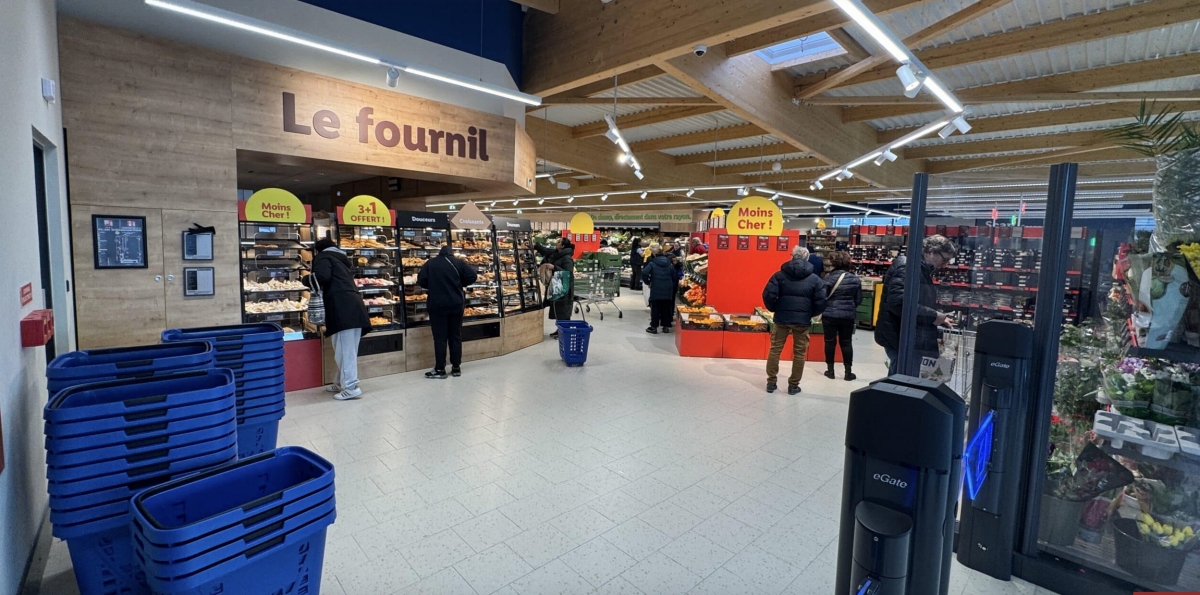 Más allá del tamaño, las aperturas sirven de escaparate del nuevo concepto de tienda que Lidl está desplegando progresivamente en Francia. Los cambios afectan tanto a la experiencia de compra como a la eficiencia operativa: pasillos más amplios, una nueva disposición de frutas y verduras en mobiliario refrigerado, renovación del espacio de panadería y señalizaciones que incorporan el color negro al tradicional binomio azul y amarillo del discounter. En el supermercado de Muret, por ejemplo, la sección de panadería se ha situado a la entrada para favorecer estas misiones de compra.