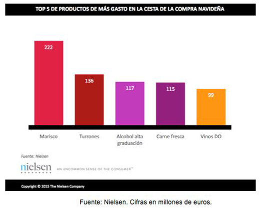 Las bebidas también ocupan un lugar destacado dentro de ese top 5 elaborado por Nielsen con los productos en los que más se gastan los españoles durante el navideño mes de diciembre, sobre todo las bebidas alcohólicas de alta graduación, un imprescindible en estas fiestas con el que nos gastamos 117 millones de euros.