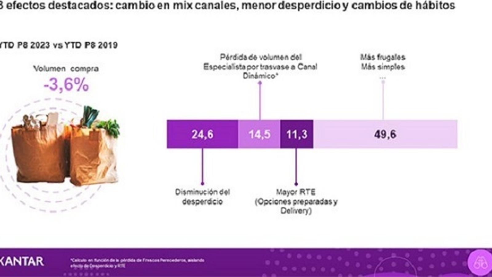 La suma de los tres factores explica aproximadamente la mitad de la reducción de volúmenes, siendo la otra mitad consecuencia de cambios de hábito más temporales y asociados a momentos de crisis, como ser menos impulsivo o, por ejemplo, ceñirse a la lista de la compra.