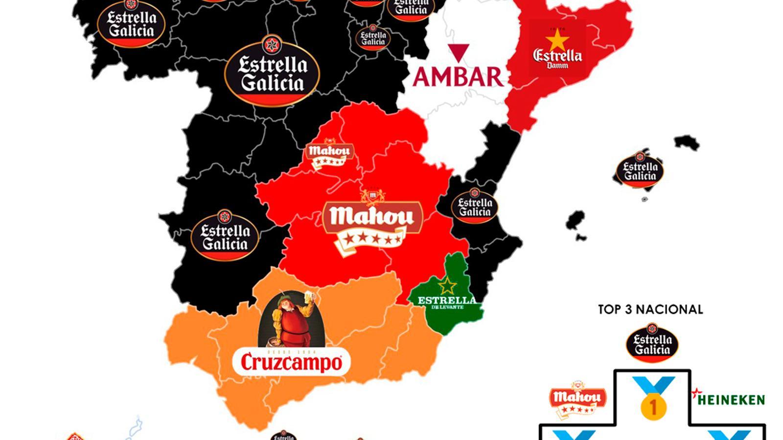 Así se demuestra si hacemos el mismo ranking a nivel nacional, Estrella Galicia (32% de los votos) es la marca preferida seguida de Mahou (15,9%). Heineken (11,5%) cierra el podio a pesar de no salir preferida en ningún territorio.