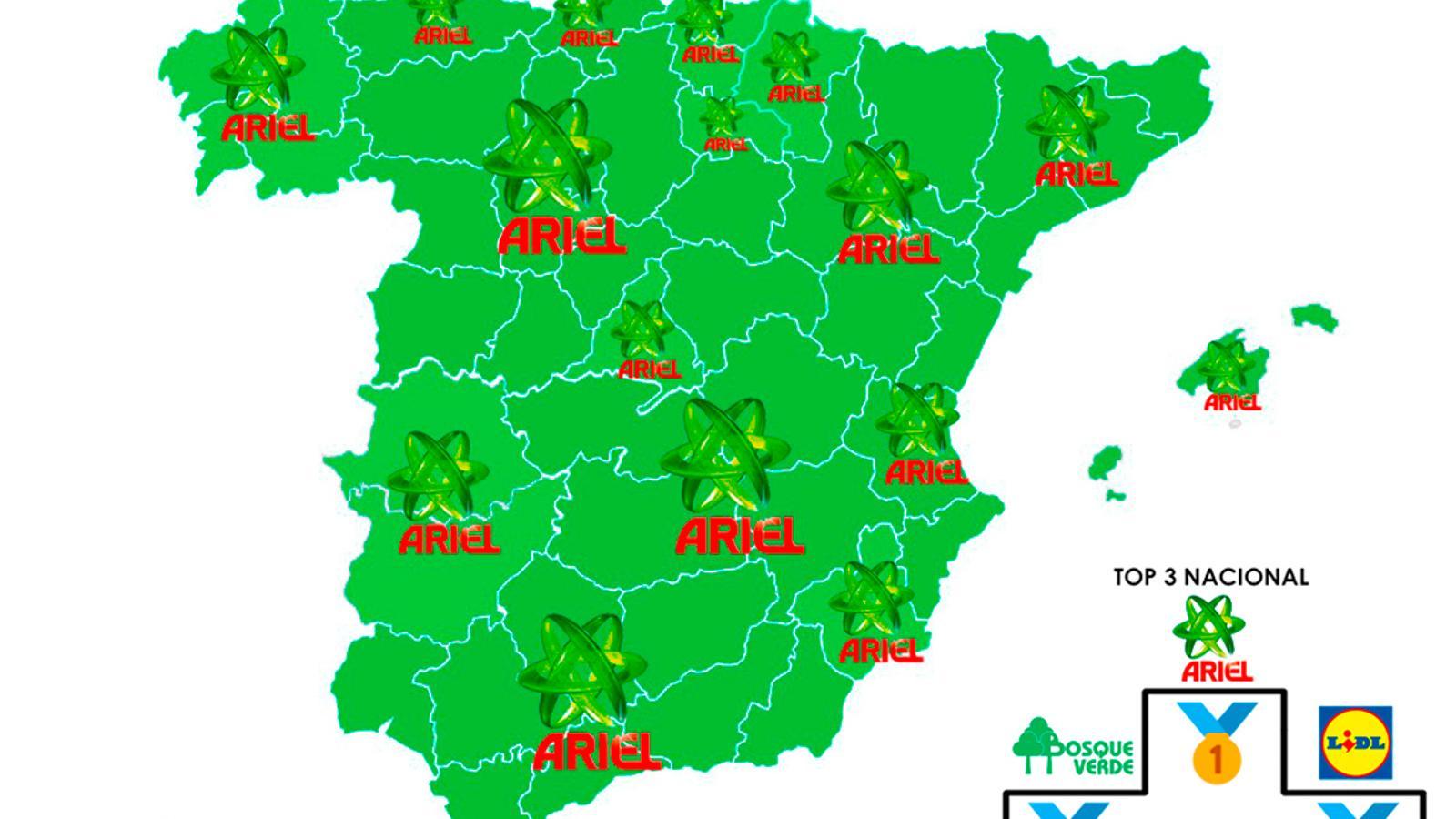 Finalmente, a la hora de lavar la ropa los españoles no tenemos dudas, Ariel es la marca preferida. Melilla parece estar lejos del dominio verde y sus habitantes en cambio prefieren la marca alemana Lidl para esos menesteres. El ranking nacional deja por lo tanto a Ariel en primer lugar (35,5% de los votos). Sin embargo, la marca Bosque Verde que comercializa Mercadona se cuela en segundo lugar (15,3%) por encima de la ya mencionada Lidl (14%).