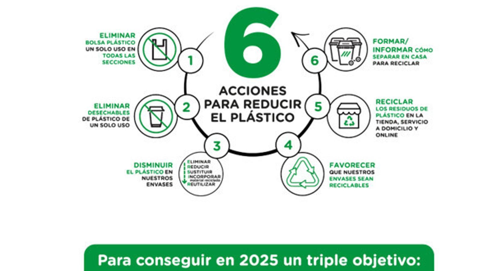 Desde hace años, la cadena valenciana centra todos sus esfuerzos en la reducción y los pilares de la economía circular como principal estrategia. Para ello, además de reforzar sus sistemas ya consolidados de reutilización y reciclaje de envases comerciales, en 2020 ha puesto en marcha la llamada Estrategia 6.25, que cuenta con seis acciones para reducir el uso de plástico y la gestión responsable de su residuo para conseguir en 2025 un triple objetivo: reducir el 25% de plástico en sus envases, que todos los envases de plástico sean reciclables y reciclar todo su residuo plástico.
