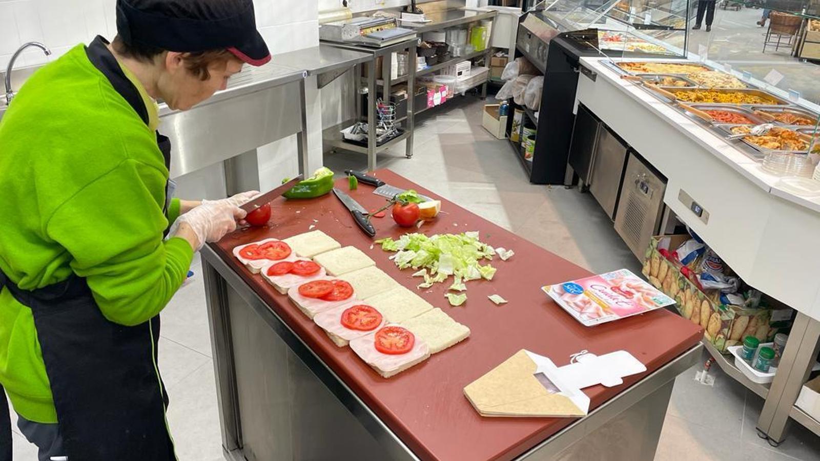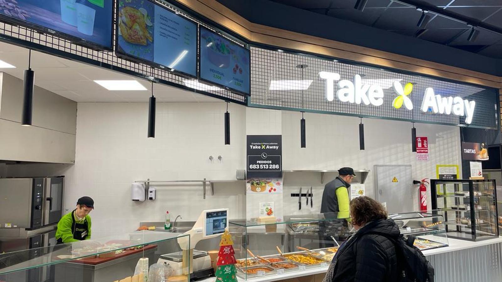 En el área Take Away se pueden adquirir pizzas con ingredientes naturales elaborados en el recinto, platos del día, bocadillos y ensaladas personalizables por el cliente. "A veces, por ejemplo, nos piden más queso", explica David, cocinero de profesión y uno de los dos trabajadores al cargo de la sección.