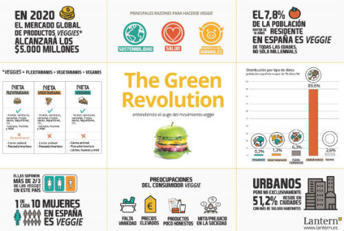 El movimiento veggie se consolida como una tendencia al alza en España, con un alto potencial de crecimiento en los próximos cinco años, según se desprende del informe The Green Revolution elaborado por la consultora Lantern.