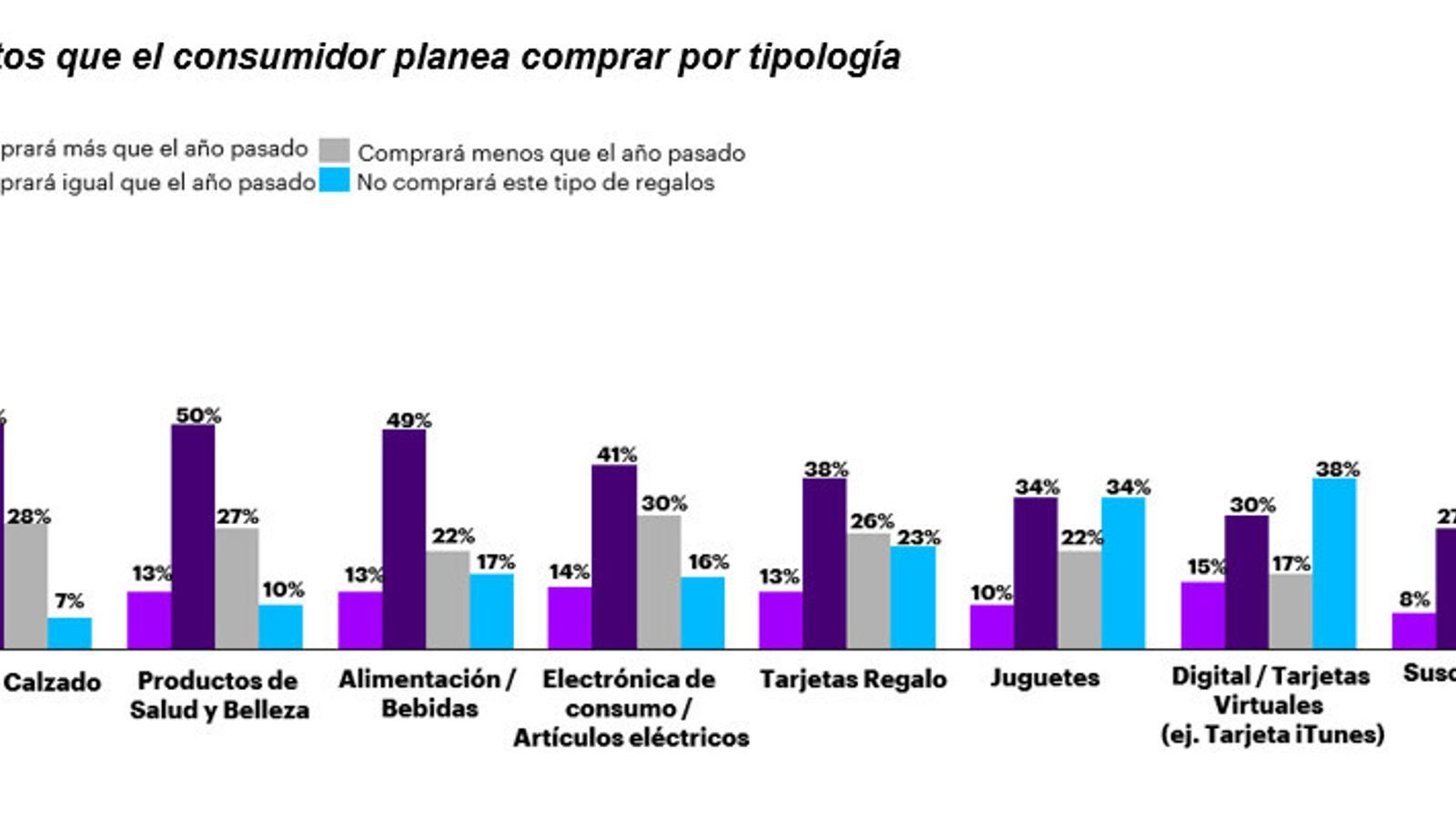 El informe también revela que las tiendas de ropa podrán recuperar algo de terreno en esta temporada de fiestas, después de un período difícil. Así, seis de cada 10 consumidores (64%) afirman que comprarían como regalo la misma cantidad de ropa o incluso más que el año pasado, seguido por los de salud y belleza (63%) y los de alimentación y bebidas (62%).