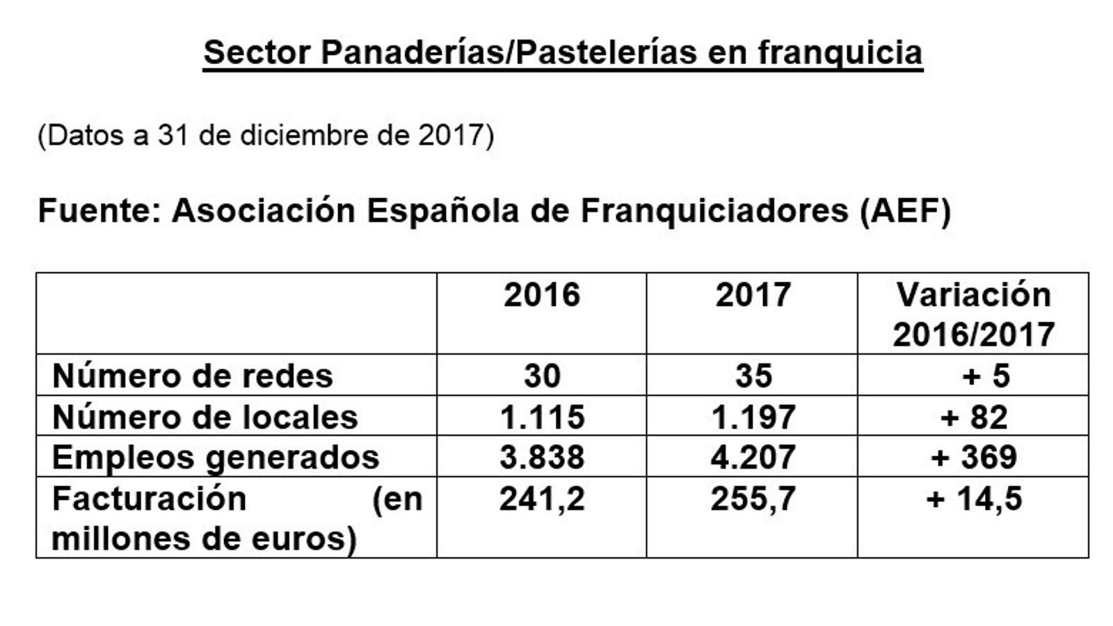 Por su parte, Eduardo Abadía, director ejecutivo de esta entidad, considera que las enseñas de Panaderías/Pastelerías "siguen creciendo año tras año y continúan siendo una opción interesante de negocio para los emprendedores, tanto para quienes quieren franquiciar como para convertirse en franquiciado".