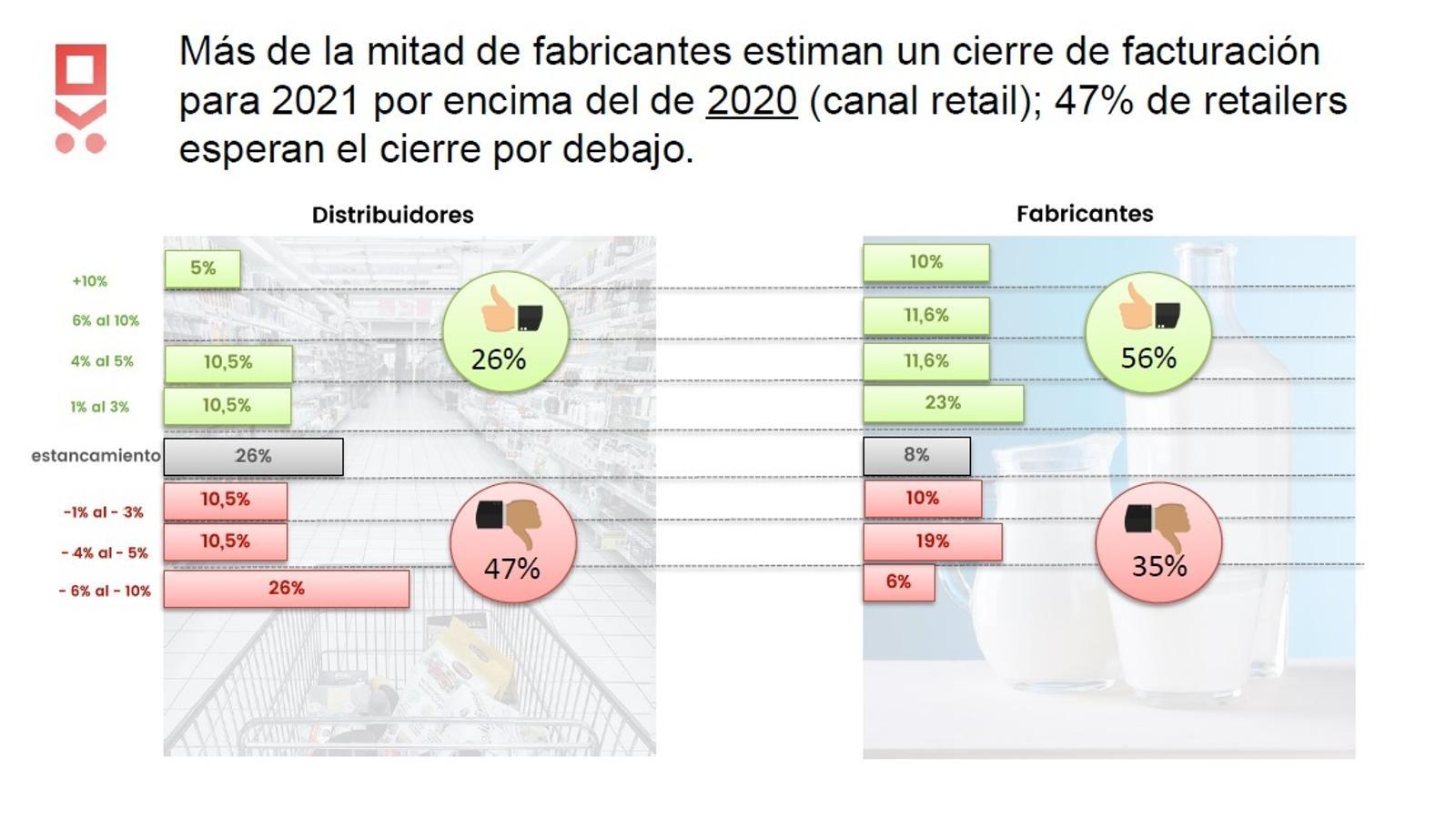 Las perspectivas de las empresas para el cierre del año cambian en comparación con un 2020 totalmente excepcional, marcado por el estado de alarma, el confinamiento y el cierre durante muchas semanas de los negocios no esenciales. En concreto, el barómetro indica que el 26% de los distribuidores cree que podrá mejorar sus resultados del año pasado, mientras que el 47% no cuenta con repetir las cifras de 2020.